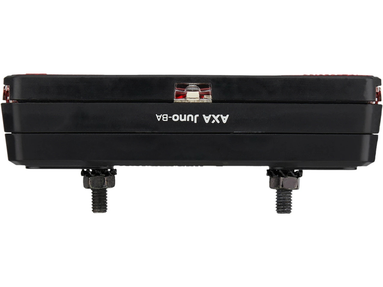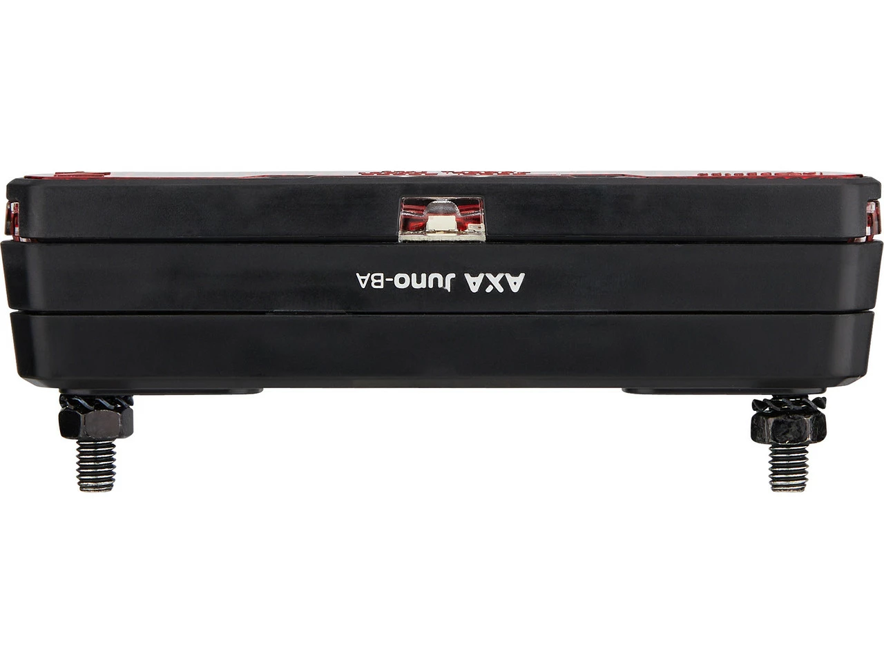 Spezifikationen:Ausführung:Rücklicht (rot)Montage:GepäckträgerLeuchtmittel:LED (1)Leuchtdauer:50 StundenBetriebsmittel:BatterieTechnische Daten:Ladestandsanzeige:Ja (Batterie schwach)Maße (H x B x T):25 x 100 x 20 mmMaterial:KunststoffStandlicht:Ja (nicht abschaltbar)Freigaben:Zulassung im Straßenverkehr:Ja, für Fahrräder (nach §67 StVZO)Prüfziffer:K~~1749Features:batteriebetriebenes, kompaktes Rücklicht mit 50 oder 80 mm MontageabstandBeleuchtungsausschnitte an den Seiten für verbesserte seitliche SichtbarkeitStandlichtfunktion mit 4 Minuten DauerAusschaltautomatik nach 5 MinutenBatteriestandsanzeigewerkzeugfreier BatteriewechselSichtbarkeit bis 500 mintegrierter Reflektorwasser- und stoßbeständigHerstellernummern:50 mm:93929095SC80 mm:93929195SCLieferumfang:1 x Rücklicht Axa Juno Batterie2 x Batterie AAA