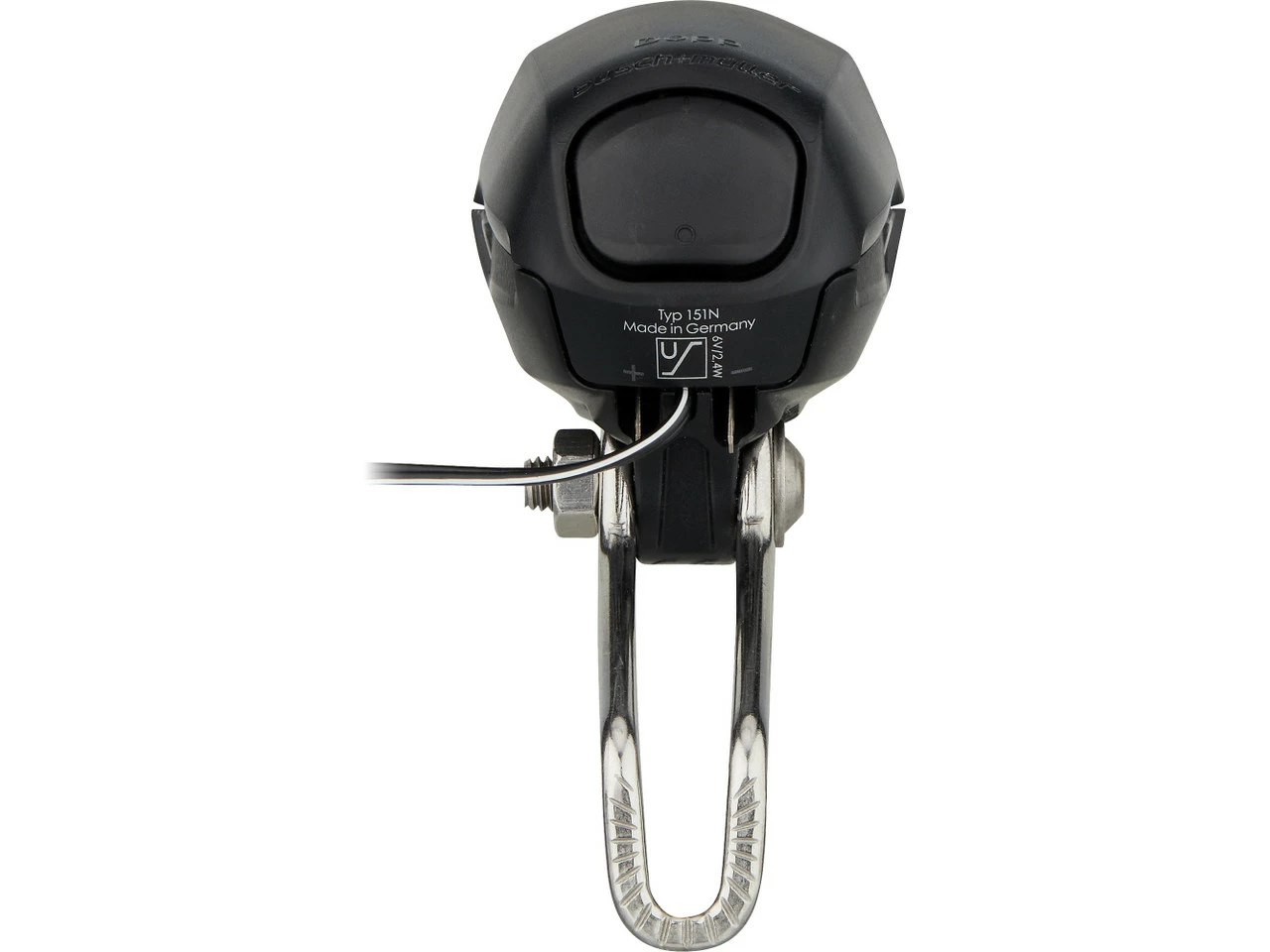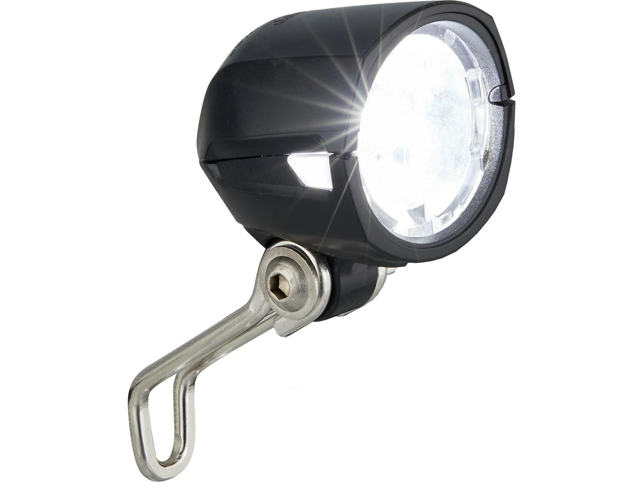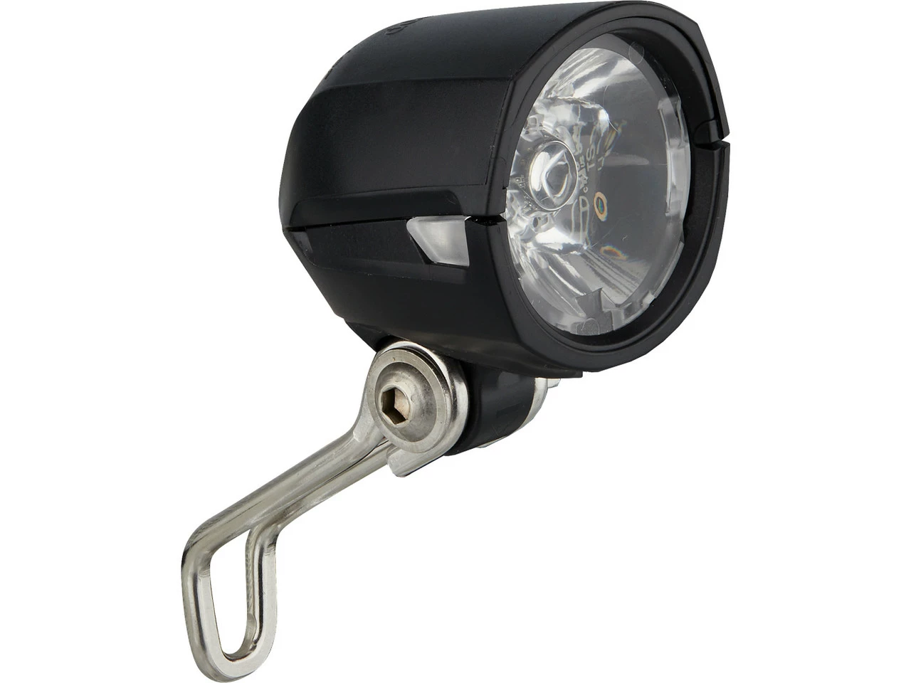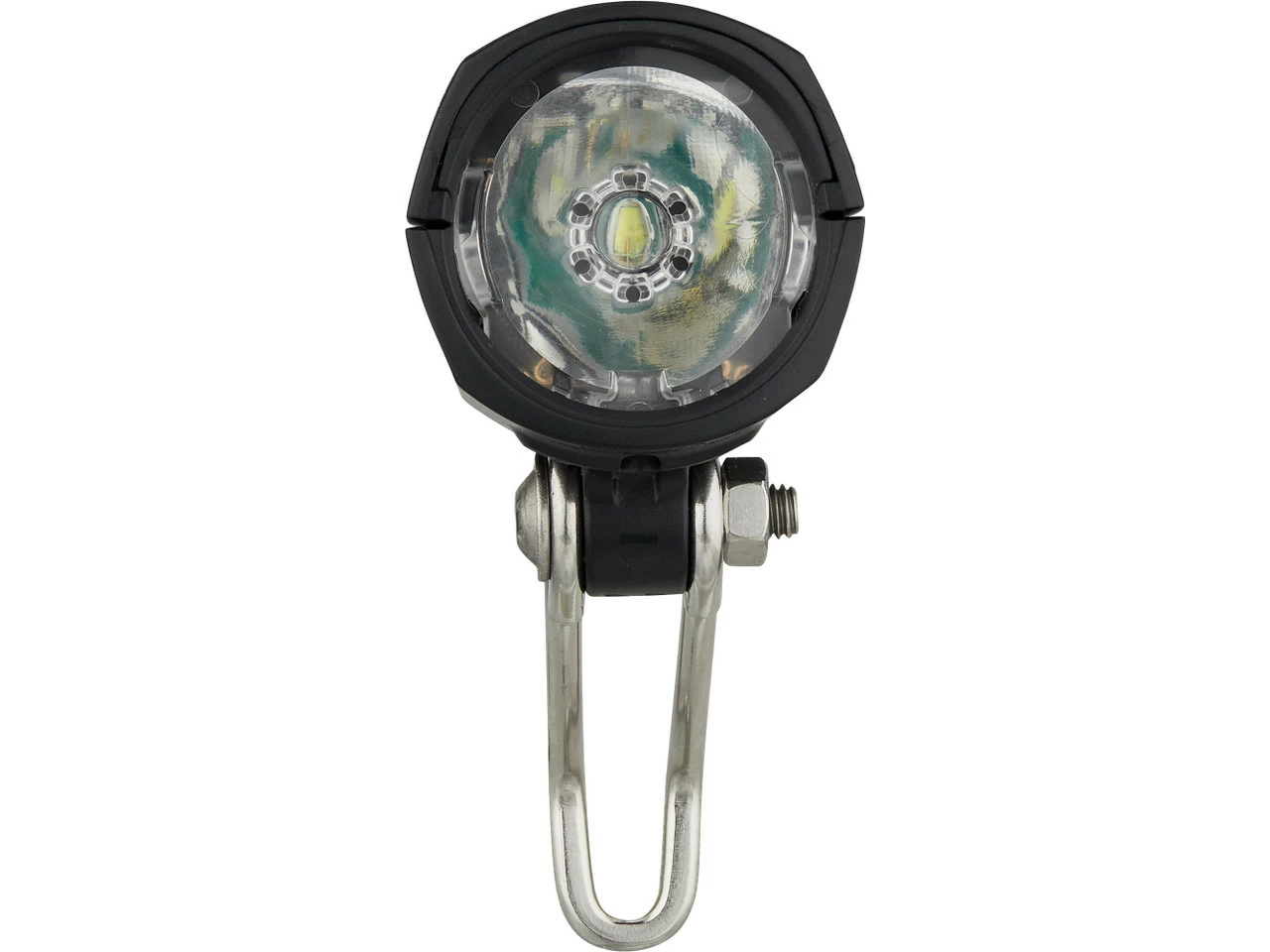 Spezifikationen:Ausführung:Frontlicht (weiß)Montage:GabelkroneLeuchtmittel:LED (1)Leuchtkraft:35 LuxBetriebsmittel:Nabendynamo, SeitenläuferdynamoTechnische Daten:Spannung:6 VMaterial:KunststoffStandlicht:NeinSchalter:Ein / AusFreigaben:Zulassung im Straßenverkehr:Ja, für Fahrräder (nach §67 StVZO)Prüfziffer:K~~1737Features:kompaktes Dynamo-Frontlicht mit 35 Lux Lichtstärkegleichmäßiges Lichtbild mit ausgeleuchtetem Nahbereichseitliche Lichtöffnungen am Gehäuse für mehr SichtbarkeitGabelhalterung aus widerstandsfähigem Edelstahloptional am Lampengehäuse montierbarer FrontreflektorAnschlussmöglichkeit für ein RücklichtHerstellernummer:151RN-04