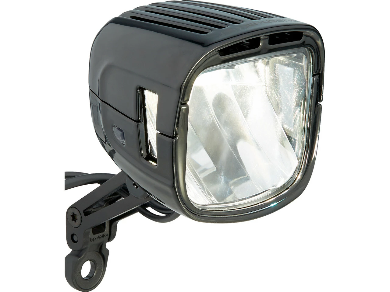 Spezifikationen:Ausführung:Frontlicht (weiß)Montage:GabelkroneLeuchtmittel:LEDLeuchtkraft:300 LuxBetriebsmittel:E-Bike-AkkuTechnische Daten:Leuchtmodi:Abblendlicht, Fernlicht, TagfahrlichtSpannung:11 – 48 VKabellänge:150 cm (Lichtanschluss), 65 cm (Taster)Material:AluminiumStandlicht:Ja (abschaltbar)Schalter:Ein / Aus / Lichtmodus / LichthupeFreigaben:Zulassung im Straßenverkehr:Ja, für Fahrräder (nach §67 StVZO)Prüfziffer:K~~1888Kompatibilität:Lichtanschluss mit mindestens 16 W NennleistungGleichspannung von 11 – 48 VFeatures:E-Bike Frontlicht mit starken 300 Lux LeuchtkraftFernlichtfunktion mit 250 Luxsensorgesteuertes Tagfahrlichtbreites Lichtfeld für klare Sicht im Dunkelnfarbig beleuchteter Lenkertaster zum Ein-, Aus- und UmschaltenHerstellernummer:169U65TS-01