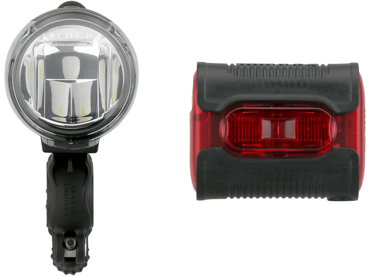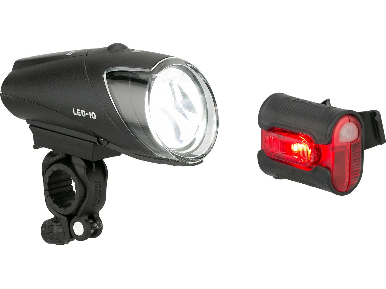 Spezifikationen Frontlicht:Ausführung:Frontlicht (weiß)Montage:UniversalhalterLeuchtmittel:1 x LEDLeuchtkraft:50 LuxLeuchtdauer:ca. 3 Stunden (High-Modus), ca. 15 Stunden (Low-Modus)Betriebsmittel:Akku (Li-Ion), integriertTechnische Daten Frontlicht:Material:AluminiumSchalter:Ein / AusFreigaben Frontlicht:Zulassung im Straßenverkehr:Ja, für Fahrräder (nach §67 StVZO)Prüfziffer:K ~~666Spezifikationen Rücklicht:Ausführung:Rücklicht (rot)Montage:UniversalhalterLeuchtmittel:1 x LEDLeuchtdauer:ca. 15 StundenBetriebsmittel:Akku (Li-Ion), integriertTechnische Daten Rücklicht:Material:KunststoffSchalter:Ein / AusFreigaben Rücklicht:Zulassung im Straßenverkehr:Ja, für Fahrräder (nach §67 StVZO)Prüfziffer:K ~~431 / 568Features Frontlicht:für alle Räder zugelassen auf Deutschlands StraßenIQ2-TechnologieAluminiumgehäusespritz- und regenwasserdichtsehr gute und homogene Fahrbahnausleuchtungper Klick abnehmbarpasst an alle Lenkerumlaufende Weichkomponente bieten Stoßschutzlässt sich bequem über Micro-USB-Ladebuchse aufladenFeatures Rücklicht:Akku-Rücklichthochleistungs-LEDsehr hellgroßer Abstrahlwinkelmit Kapazitätsindikatorlässt sich bequem über Micro-USB-Ladebuchse aufladenLieferumfang:1 x Frontlicht busch+müller Ixon IQ1 x Halter busch+müller Ixon IQ1 x Lithium-Ionen-Akku busch+müller Ixon IQ1 x Rücklicht busch+müller Ixback1 x Lithium-Akku busch+müller Ixback1 x Befestigungsmaterial busch+müller Ixback und Lithium-Akku1 x USB-Kabel1 x Ladegerät
