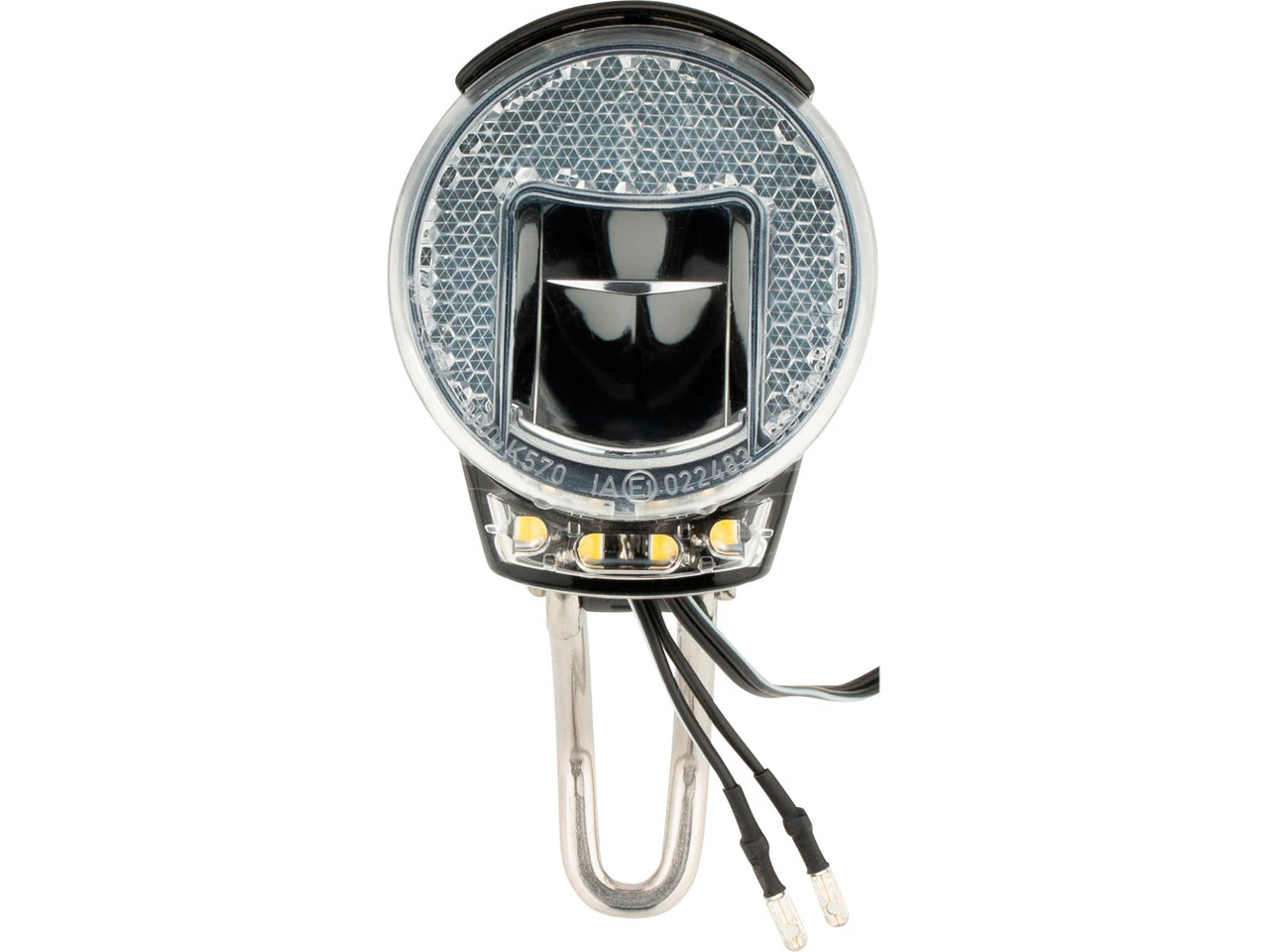 Spezifikationen:Ausführung:Frontlicht (weiß)Montage:Edelstahl LampenhalterLeuchtmittel:4 x LEDLeuchtkraft:60 LuxBetriebsmittel:Nabendynamo, SeitenläuferdynamoTechnische Daten:Leuchtmodi:Tag- und Nacht-ModusMaterial:KunststoffStandlicht:Ja (abschaltbar)Schalter:Ein / Aus / Automatik (Sensor)Freigaben:Zulassung im Straßenverkehr:Ja, für Fahrräder (nach §67 StVZO)Prüfziffer:K ~~ 570Features:spezielle IQ-Premium Lichttechnikmit Nahfeldausleuchtungintegrierter Frontstrahlermit integriertem Überspannungsschutzbesitzt einen 3-fach-Schalter (Ein/Aus/Automatik)mit praktischer Standlichtfunktion dank KondensatortechnikKomfort durch intelligente Sensortechnikintegrierter Hell-Dunkel-Sensor sorgt dafür, dass bei Dämmerung und Dunkelheit die Lichtanlage automatisch leuchtetmit Schalter für Naben-Dynamokommt samt Edelstahl-Lampenhaltermit integriertem Rückstrahlerzugelassen im Bereich der StVOTechnologien:IQ-Technik