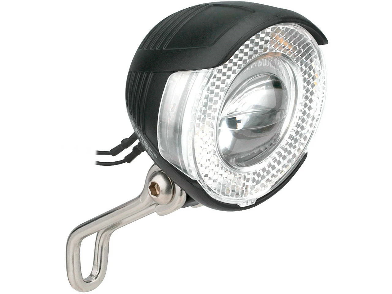 Spezifikationen:Ausführung:Frontlicht (weiß)Montage:Edelstahl LampenhalterLeuchtmittel:1 x LEDLeuchtkraft:25 LuxBetriebsmittel:Nabendynamo, SeitenläuferdynamoTechnische Daten:Material:KunststoffStandlicht:Ja (nicht abschaltbar)Schalter:Ein / AusFreigaben:Zulassung im Straßenverkehr:Ja, für Fahrräder (nach §67 StVZO)Prüfziffer:K ~~ 866Features:mit einer Hochleistungs-LEDmit praktischer Standlichtfunktionoptimale NahfeldausleuchtungSeitenfenster ermöglicht aktive Seitenabstrahlungcomputerdesignte LinsenwölbungScheinwerferdurchmesser von 62 mmRückstrahler-Ring bietet passive Sicherheithomogene und breite Fahrbahnausleuchtungblanker Edelstahlhaltervier Anschlüsse mit beiliegendem Doppelkabelmit Schalter für Naben-Dynamozugelassen im Bereich der StVOTechnologien:Standlicht