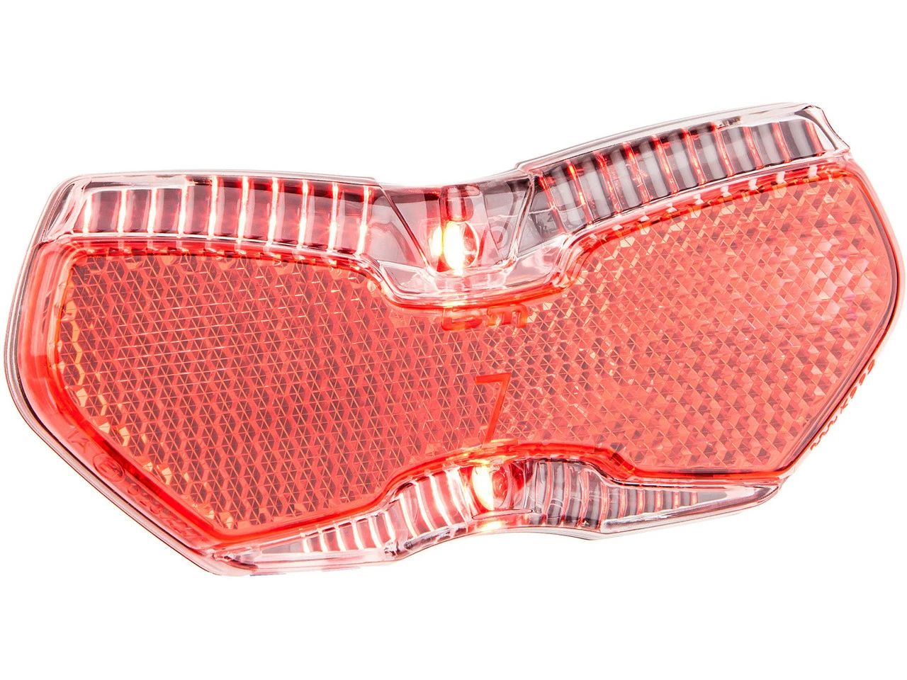 Spezifikationen:Ausführung:Rücklicht (rot)Montage:Schraubenabstand 50 / 80 mmLeuchtmittel:2 x LEDBetriebsmittel:Nabendynamo, SeitenläuferdynamoTechnische Daten:Material:KunststoffStandlicht:Ja (nicht abschaltbar)Freigaben:Zulassung im Straßenverkehr:Ja, für Fahrräder (nach §67 StVZO)Prüfziffer:K ~~992Features:ideale Seitenabstrahlung durch umlaufenden Klarglas-Korpuspatentiertes Linsensystem (LineTec® x 2) mit Hochleistungs-LEDmit praktischer Standlichtfunktion dank Kondensatortechnikmit Großflächenrückstrahler50 bis 80 mm Bolzenabstandzugelassen im Bereich der StVOTechnologien:Standlicht