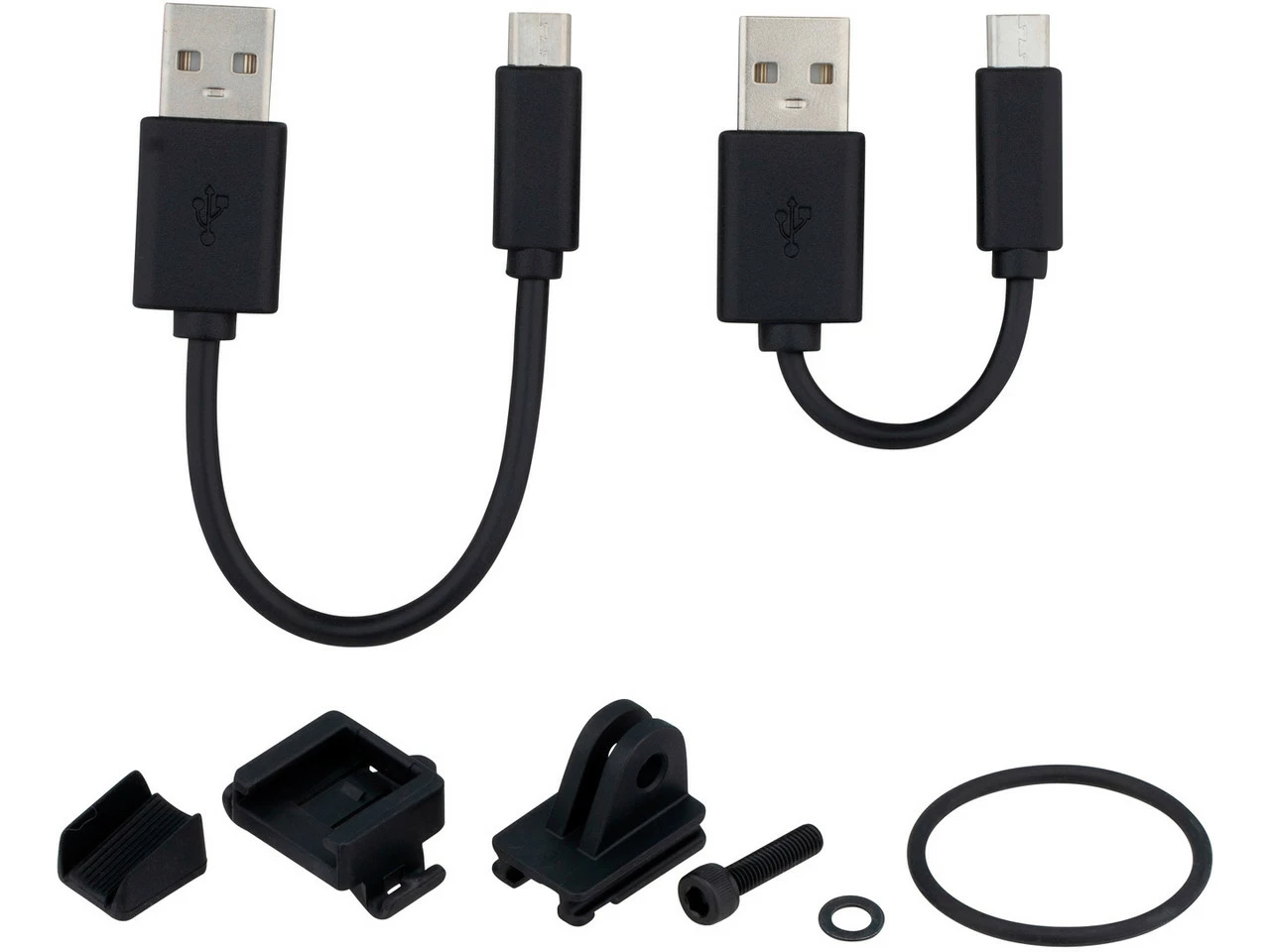 Lieferumfang:1 x LED-Frontlicht CATEYE GVolt 70.11 x LED-Rücklicht CATEYE TL-LD620G Rapid Micro G1 x Halterung CATEYE FlexTight H-34N1 x Halterungsadapter CATEYE GP1 x Sattelstützenhalterung CATEYE SP-14-R2 x Ladekabel USBDirekt mitbestellen:passende Out-Front-Halterung für GP-Adapter, z. B. CATEYE OF-200, K-Edge Combo, 3min19sec Lenkerhalterung