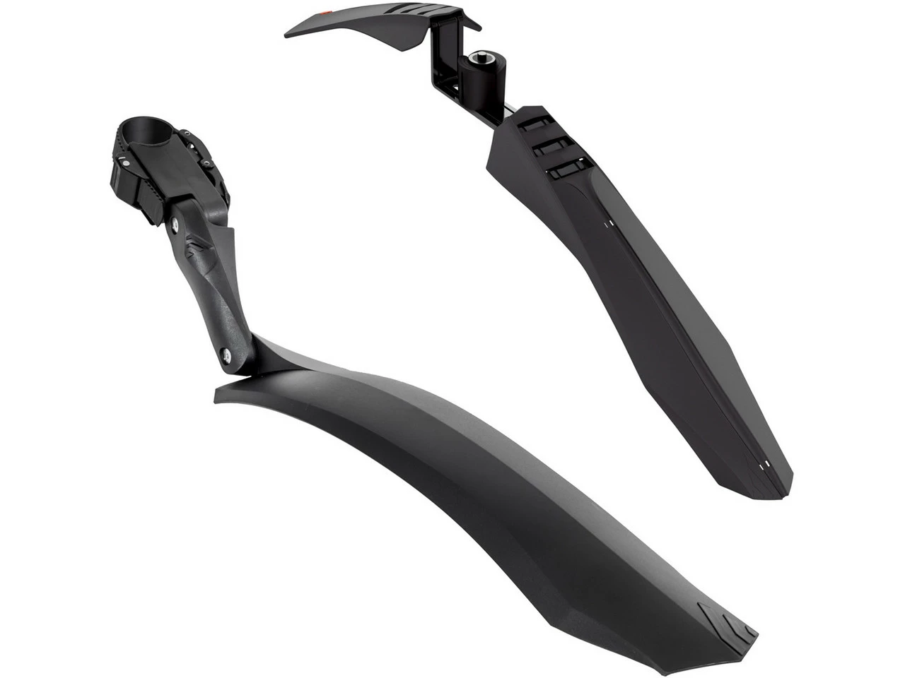 Das Hebie Viper X Schutzblech Set besteht aus einem Viper X F Vorderrad-Schutzblech zur festen Gabelmontage und einem Viper X Hinterrad-Schutzblech zur Befestigung an der Sattelstütze.