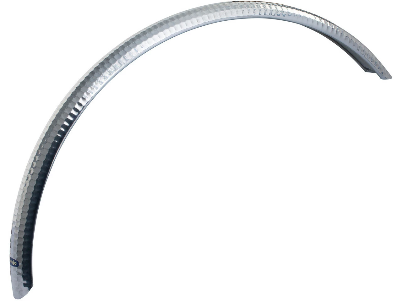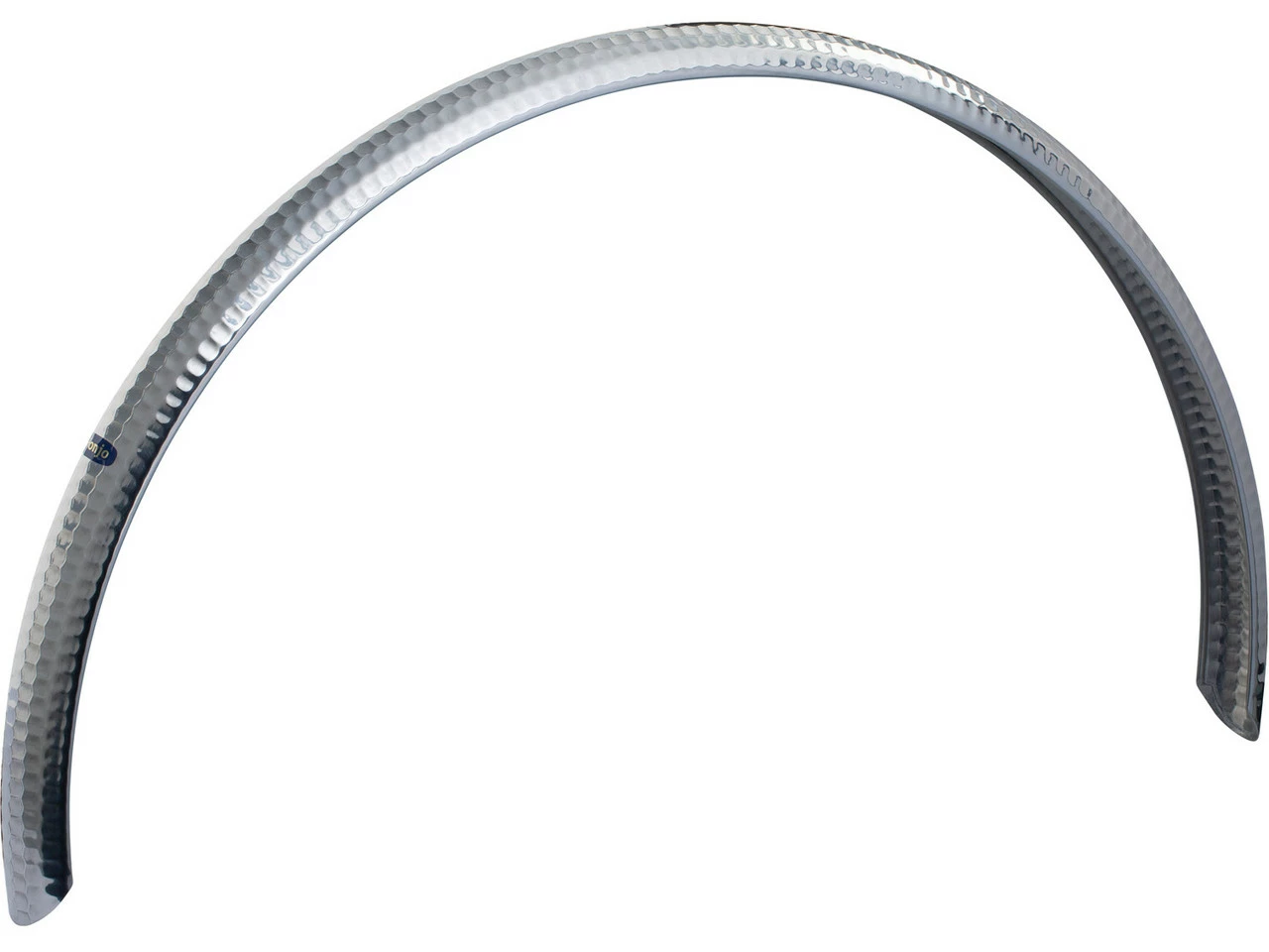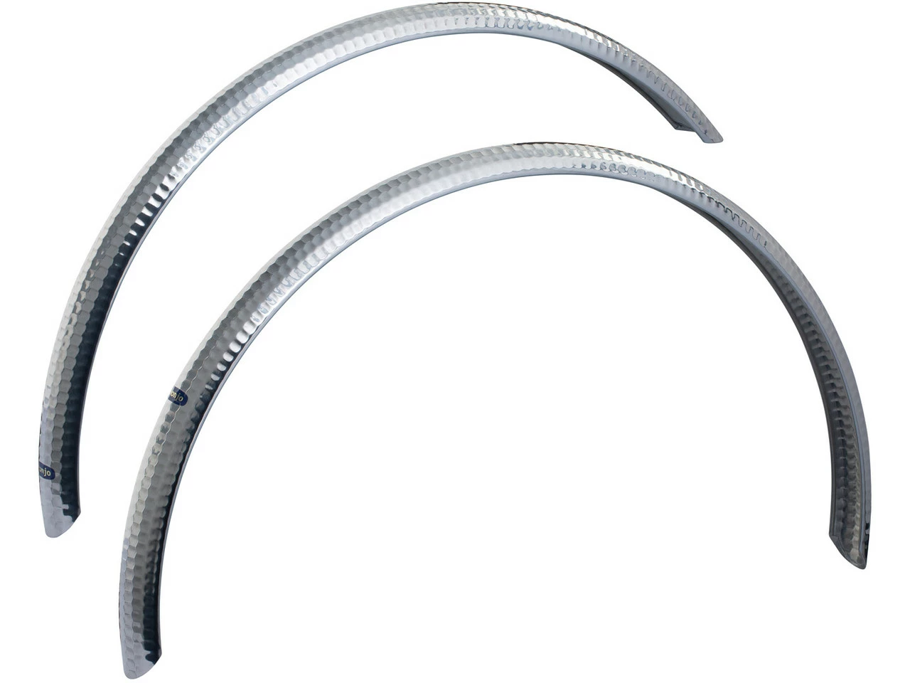 Das H50 Schutzblech Set von Honjo gehört zu den legendären auf Hochglanz polierten Klassikern aus Japan. Die Schutzbleche decken eine Reifenbreite von bis zu 41 mm ab. Mit dem besonders weit umfassenden Profil wird Spritzwasser einwandfrei im Blech gefangen gehalten. Das heißt, auch Füße und Kurbel bleiben trocken. Zudem verfügen die handgearbeiteten Schutzbleche von Honjo über eine edle Optik, ein geringes Gewicht und eine ausgesprochen lange Haltbarkeit. Das H50 gibt es auch als „hammered“ Version, bei Fans von klassischen Rädern eine besonders beliebte Optik.