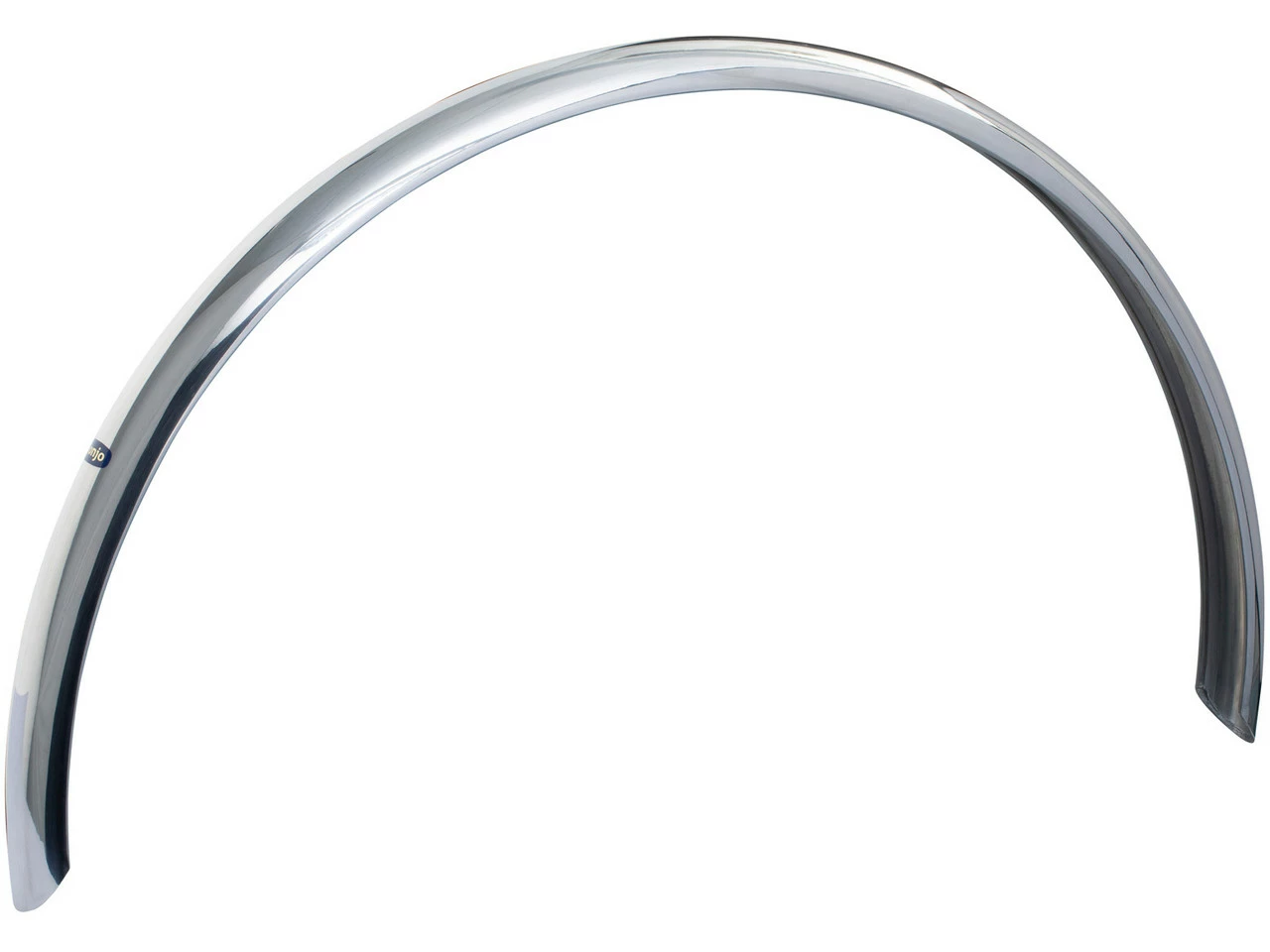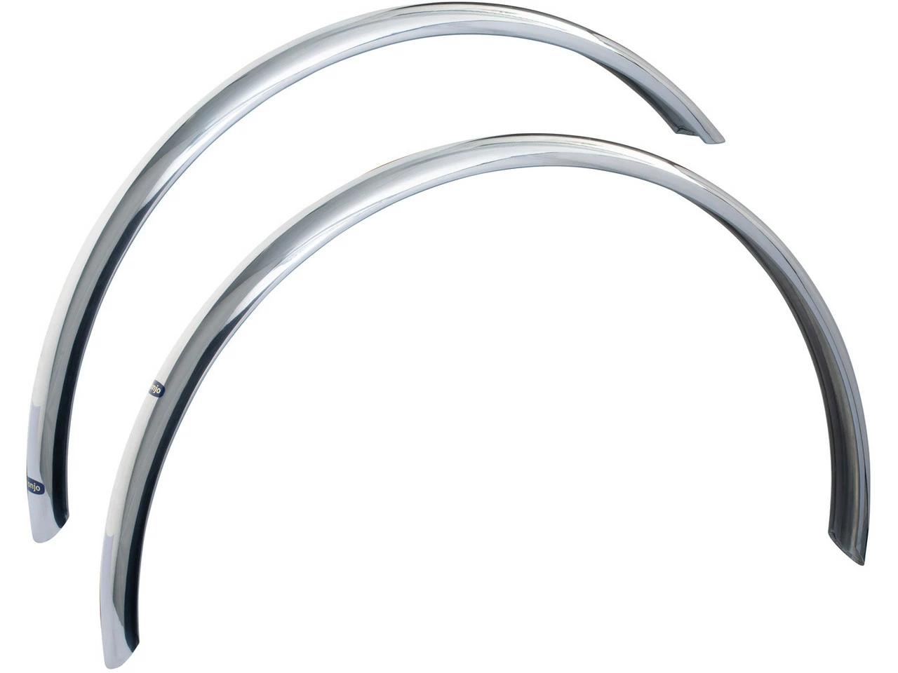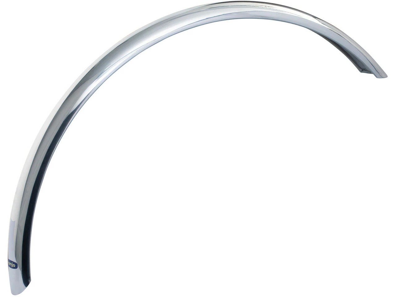 Das H50 Schutzblech Set von Honjo gehört zu den legendären auf Hochglanz polierten Klassikern aus Japan. Die Schutzbleche decken eine Reifenbreite von bis zu 41 mm ab. Mit dem besonders weit umfassenden Profil wird Spritzwasser einwandfrei im Blech gefangen gehalten. Das heißt, auch Füße und Kurbel bleiben trocken. Zudem verfügen die handgearbeiteten Schutzbleche von Honjo über eine edle Optik, ein geringes Gewicht und eine ausgesprochen lange Haltbarkeit. Das H50 gibt es auch als „hammered“ Version, bei Fans von klassischen Rädern eine besonders beliebte Optik.