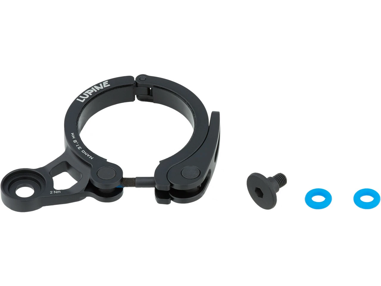 Technische Daten:Material:AluminiumKlemmung:25,4 mm, 31,8 mmFeatures:Schnellspanner zur Lenkermontage für die Lupine SL Nanoaus CNC-gefrästem AluminiumGummiauflage verhindert Kratzer und sorgt für festen HaltHerstellernummern:25,4 mm:d432531,8 mm:d4331Lieferumfang:1 x Schnellspanner Lupine SL Nano1 x Schraube Lupine2 x O-Ring Lupine