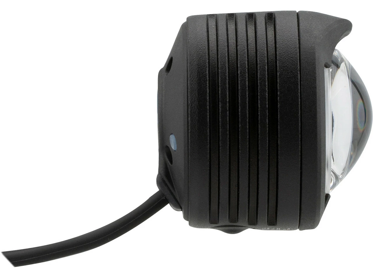 Spezifikationen:Ausführung:Frontlicht (weiß)Montage:Lenkerhalterung (31,8 mm)Leuchtmittel:18 x Osram Compact CL LEDLeuchtkraft:1300 Lumen (Fernlicht), 1000 Lumen (Abblendlicht 16 W), 650 Lumen (Abblendlicht 8 W), 0 Lumen (Tagfahrlicht)Leuchtdauer:variiert je nach verwendetem AkkuBetriebsmittel:externer Li-Ion Akku (separat erhältlich)Technische Daten:Leuchtmodi:Fernlicht 16 W, Abblendlicht 16 W, Abblendlicht 8 W, Tagfahrlicht 1,5 WSchutzklasse:IP 68 (Wasserdichtigkeit), IK 09 (Schlagfestigkeit)Maße (H x B x T):48 x 50 x 49 mmMaterial:Aluminium 6061-T6; CnC gefrästSchalter:
