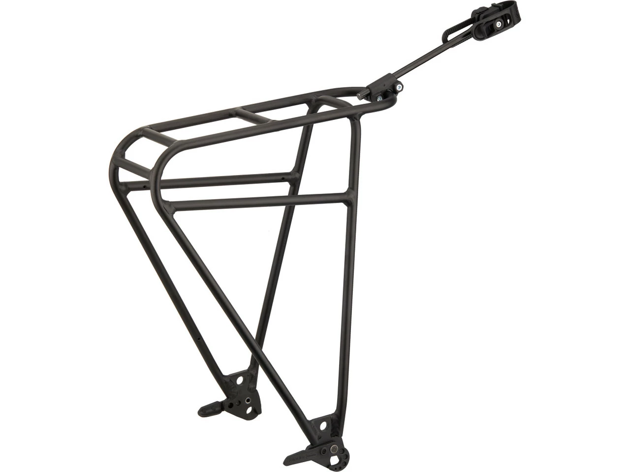 Spezifikationen:Einsatzbereich:City, Touring & Trekking, GravelBefestigung oben:SattelstützeBefestigung unten:Ösen am AusfallendeLaufradgröße:26″ , 27,5″ , 28″ , 29″Strebendicke:10 mmZuladung (max.):20 kgKompatibilität:Rahmen mit M5- oder M6-Gewindeaufnahmen (alternativ Seat Stay Adapter verwenden), ORTLIEB Fahrradtaschen mit QL1-/QL2-/QL2.1-/QL3-/QL3.1-Halterungssystem, Körbe und Taschen mit Top-Lock-AdaptersystemTechnische Daten :Material:AluminiumReifenbreite max.:3″ , 2,35″ bei 29″ -ReifenLochabstand Rücklicht:50 mmFreigaben:Einbaubreite max.:190 mmHinweis des Herstellers:Der Gepäckträger ist nicht zur Montage und Verwendung von Kindersitzen geeignet.
