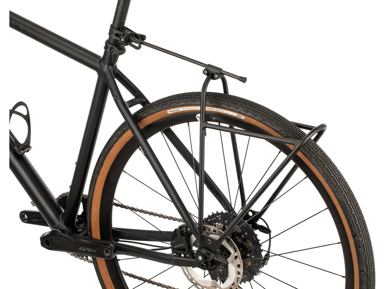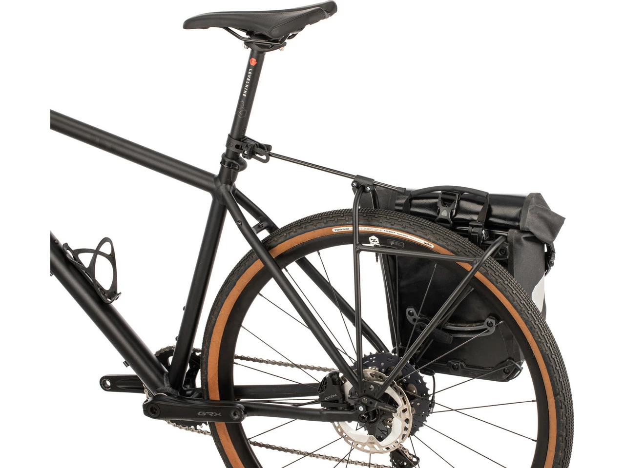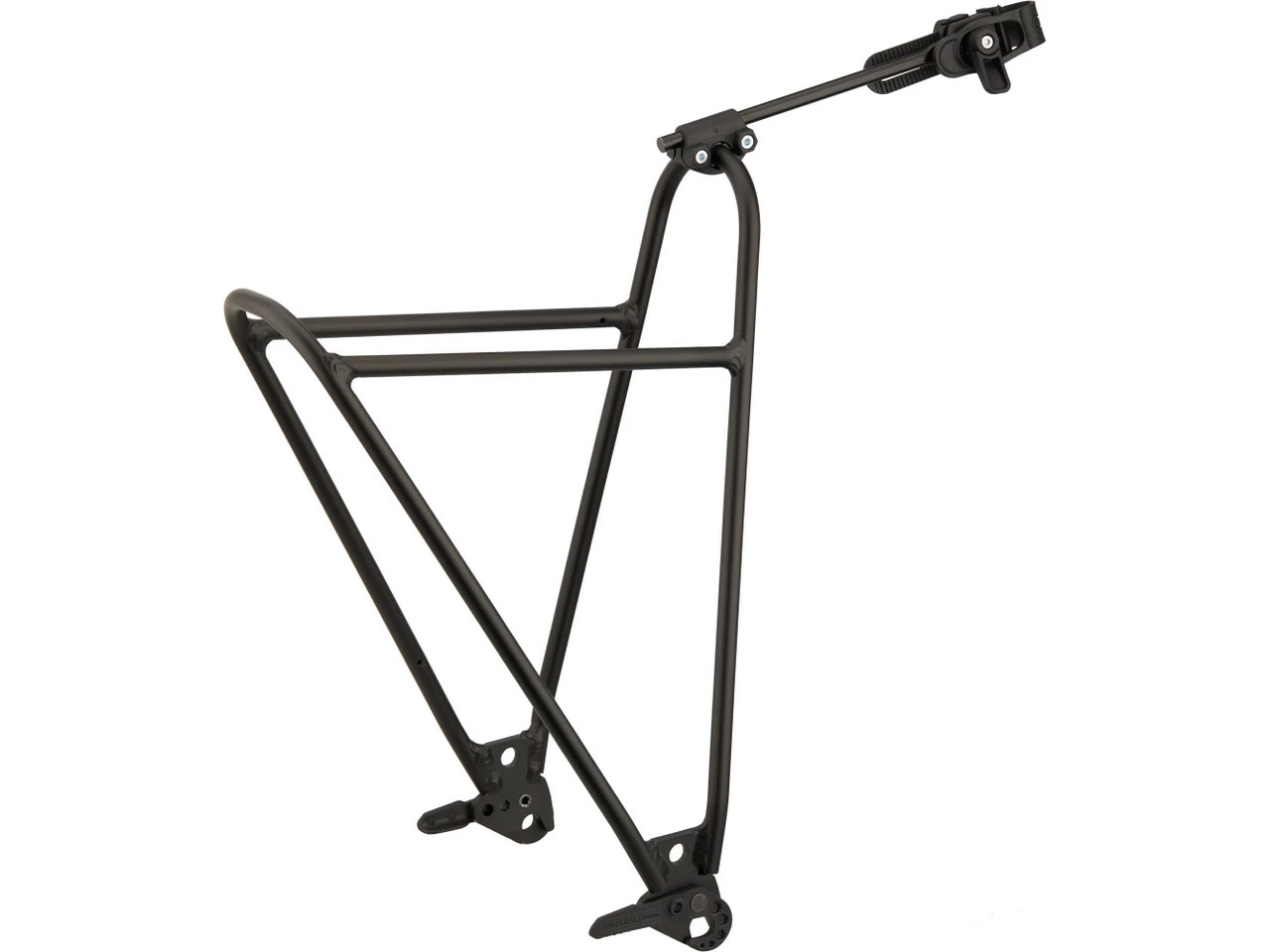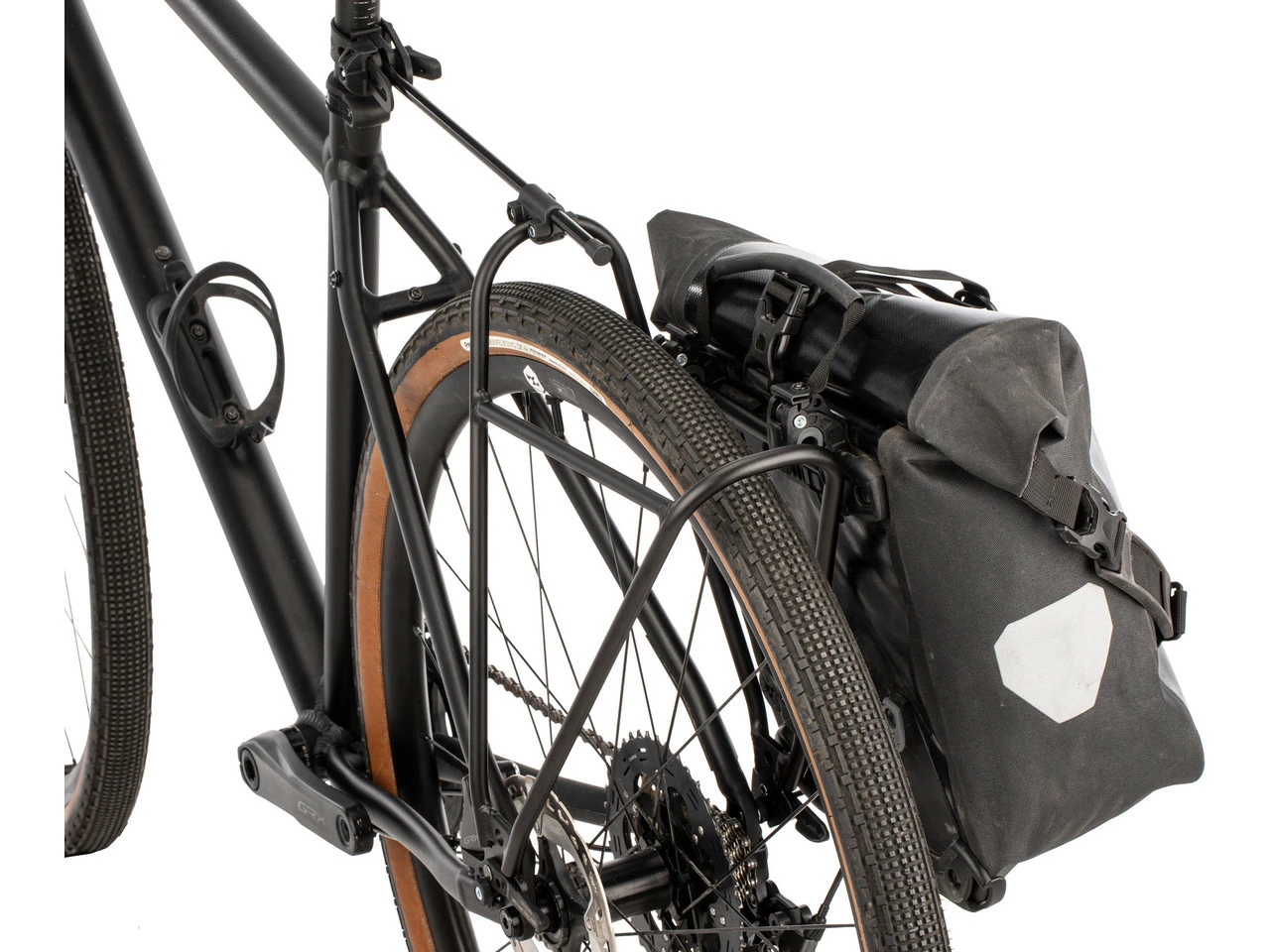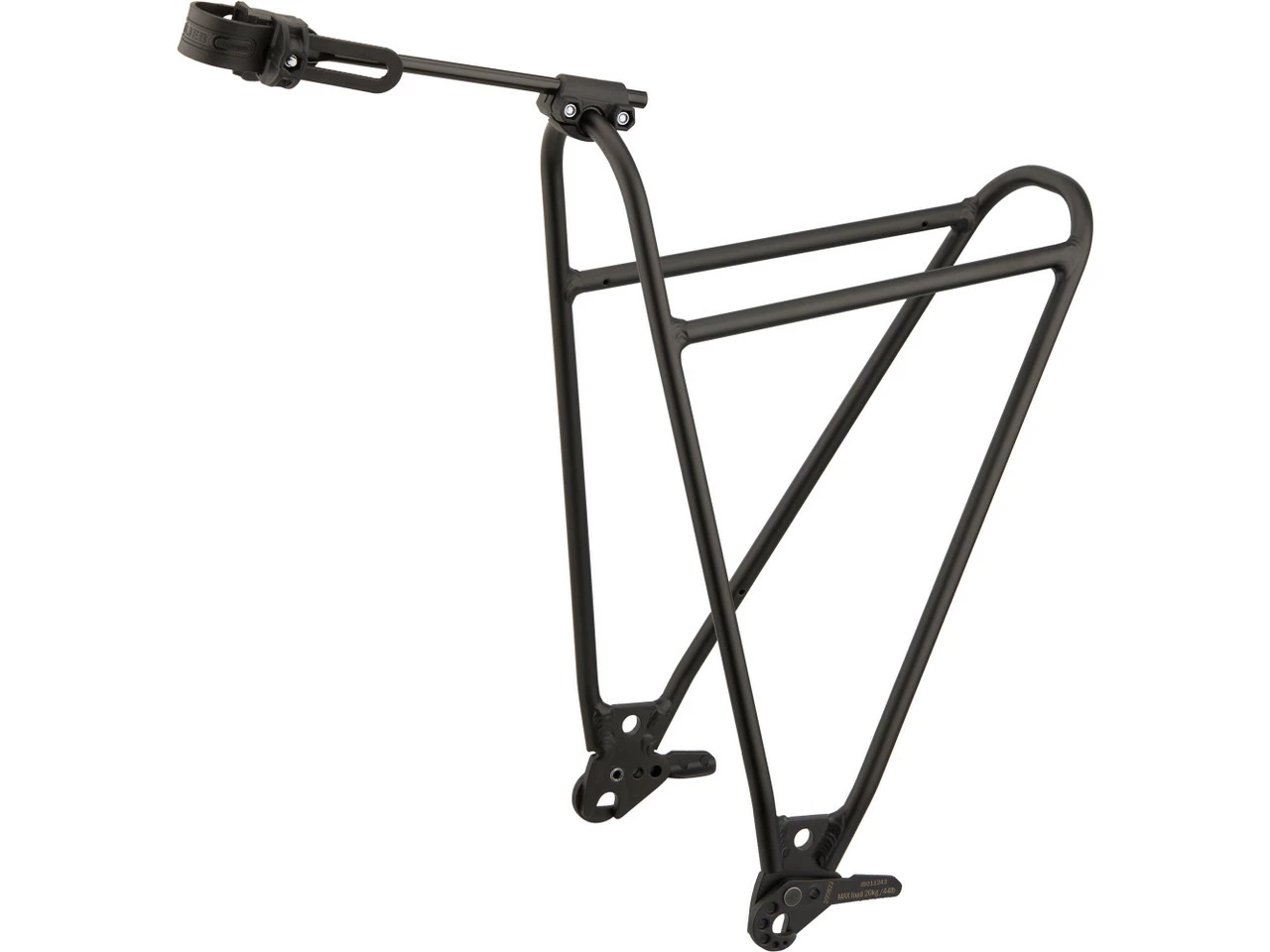 Spezifikationen:Einsatzbereich:City, Touring & Trekking, GravelBefestigung oben:Sattelstütze / SitzrohrBefestigung unten:Ösen am AusfallendeLaufradgröße:26″ , 27,5″ , 28″ , 29″Strebendicke:10 mmZuladung (max.):20 kgKompatibilität:Rahmen mit M5- oder M6-Gewindeaufnahmen (alternativ Seat Stay Adapter verwenden), ORTLIEB Fahrradtaschen mit QL1-/QL2-/QL2.1-/QL3-/QL3.1-HalterungssystemTechnische Daten :Material:AluminiumReifenbreite max.:3″ , 2,3″ bei 29″ -ReifenLochabstand Rücklicht:50 mmFreigaben:Einbaubreite max.:190 mmFeatures:mit Quick-Release-System zur temporären Verwendung an Sporträdern, die auch im Alltag oder für Kurzreisen genutzt werdenin 15 Sekunden montiert, in 5 Sekunden demontiertlediglich unauffällige Auflagepunkte verbleiben am Radminimalistisches Design mit einer Einhängeebene pro Seite für seitliche Radtaschensehr leichtwird oben mittels längenverstellbarer Strebe an Sattelstütze oder Sitzrohr befestigt, zwei Strebenlängen im Lieferumfang (extralange Befestigungsstrebe mit 300 mm Länge)Klemmung an Sattelstütze oder Sitzrohr für Durchmesser von 20 – 40 mm geeignetwird unten an M5- oder M6-Ösen am Ausfallende befestigt, alternative Befestigung mit Seat Stay Adapter an Sitzstreben möglich (nicht im Lieferumfang)mit Aufnahme für unverkabeltes RücklichtHalterungselemente für QL3/3.1-Taschen können je nach Bedarf an- oder abgeschraubt werdenHerstellernummer:F78105