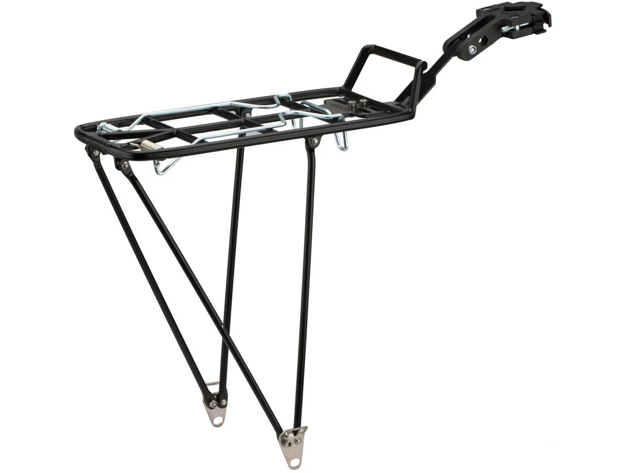 Spezifikationen:Einsatzbereich:All Mountain, Road, CrossCountryBefestigung:SchnellspannerLaufradgröße:26″ , 28″Zuladung (max.):25 kgTechnische Daten:Material:Aluminium DruckgussFeatures:integrierte Rückstrahleraufnahmerostfreie SchraubenverbindungenpulverbeschichtetFedern und Achsen aus verzinktem FederstahlAusführungen:26″ :