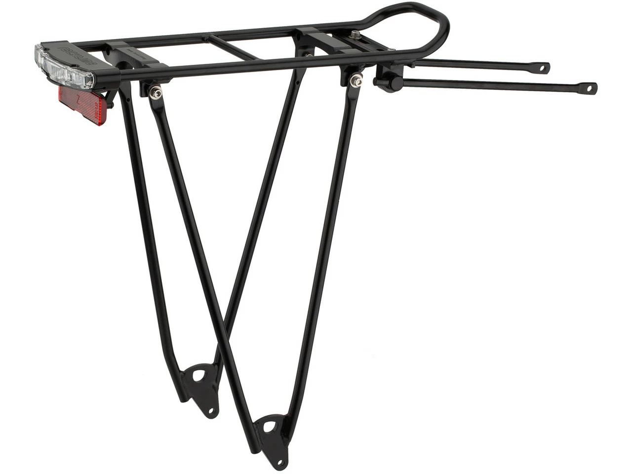 Spezifikationen:Einsatzbereich:Touring & Trekking, City, GravelBefestigung oben:HinterbaustrebenbefestigungBefestigung unten:Strebenbefestigung an RahmenausfallendeLaufradgröße:26″ , 28″Strebendicke:10 mmZuladung (max.):25 kgAusführung Licht:Rücklicht (rot)Leuchtmittel:LED (2)Betriebsmittel:NabendynamoTechnische Daten:Material Gepäckträger:Aluminium (6061)Material Rücklicht:KunststoffReifenbreite (max.):60 mmLochabstand Rücklicht:50 mm, 80 mmStandlicht:Ja (nicht abschaltbar)Freigaben:Zulassung im Straßenverkehr:Ja, für Fahrräder (nach §67 StVZO)Prüfziffer:K~~720