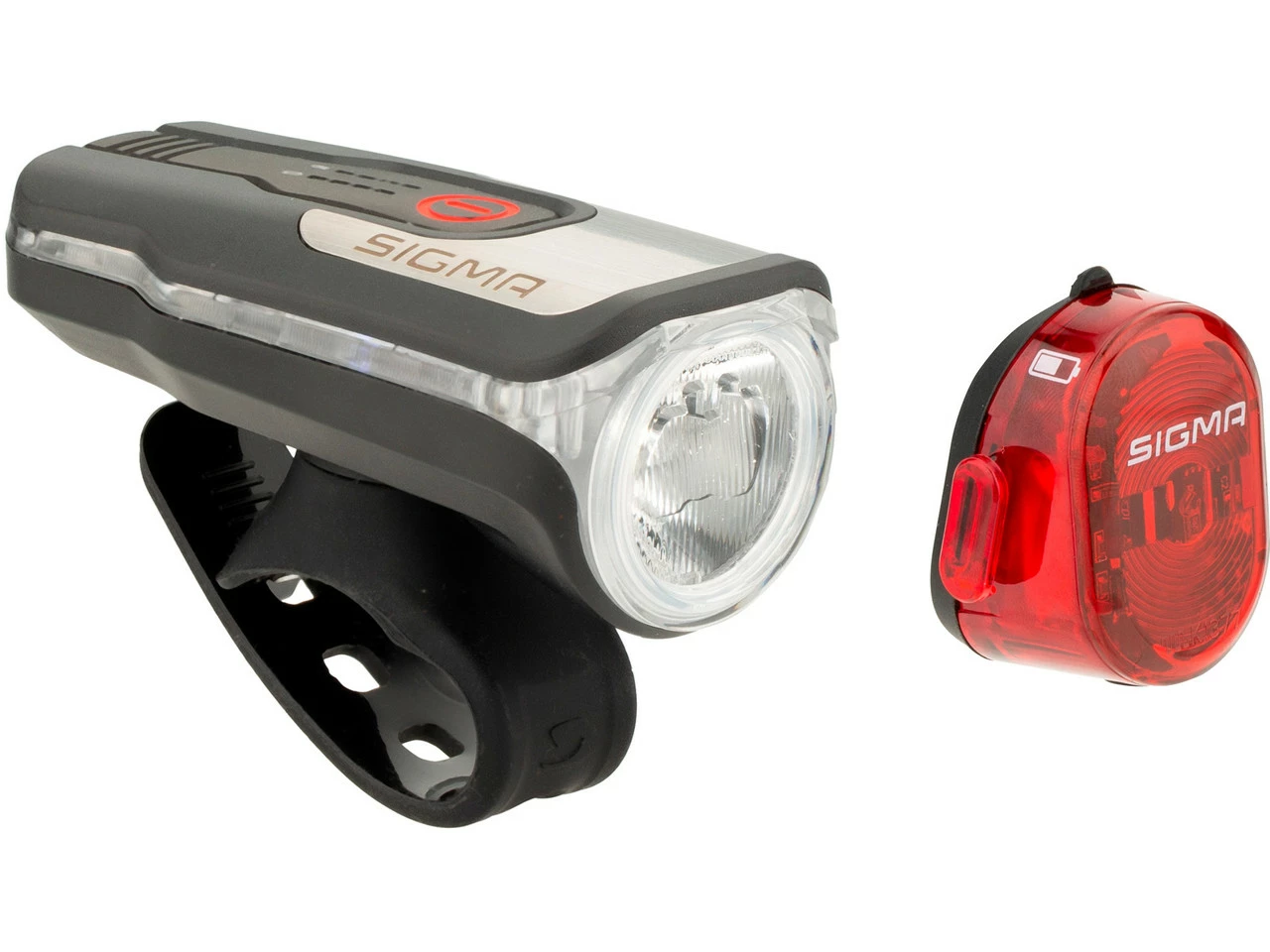 Lieferumfang:1 x Frontlicht Sigma Aura 80 USB1 x Halterung Sigma Frontlicht1 x Rücklicht Sigma Nugget II2 x O-Ring (verschiedene Durchmesser)1 x Ladekabel Micro-USB