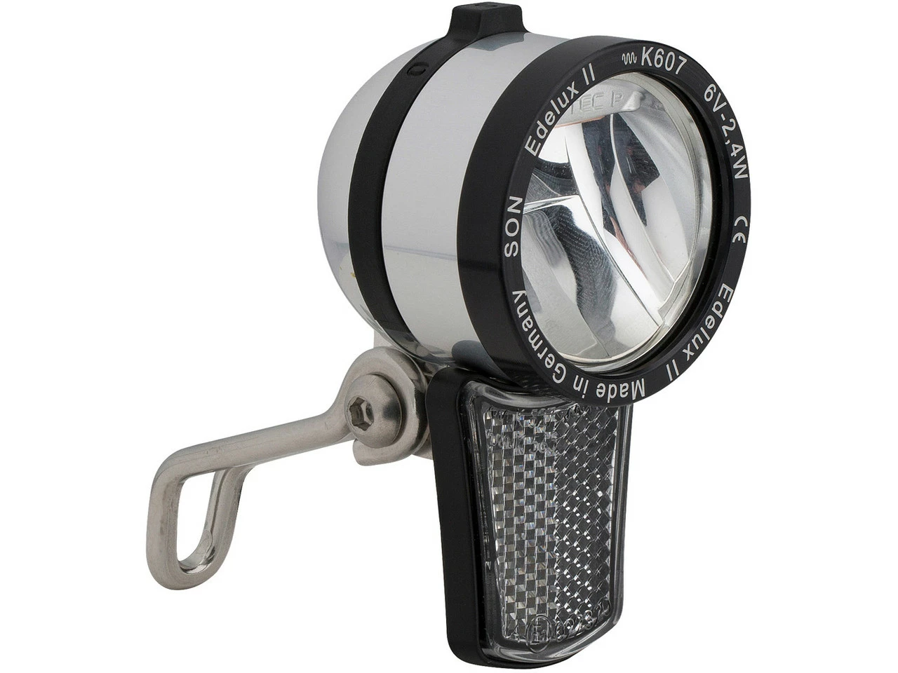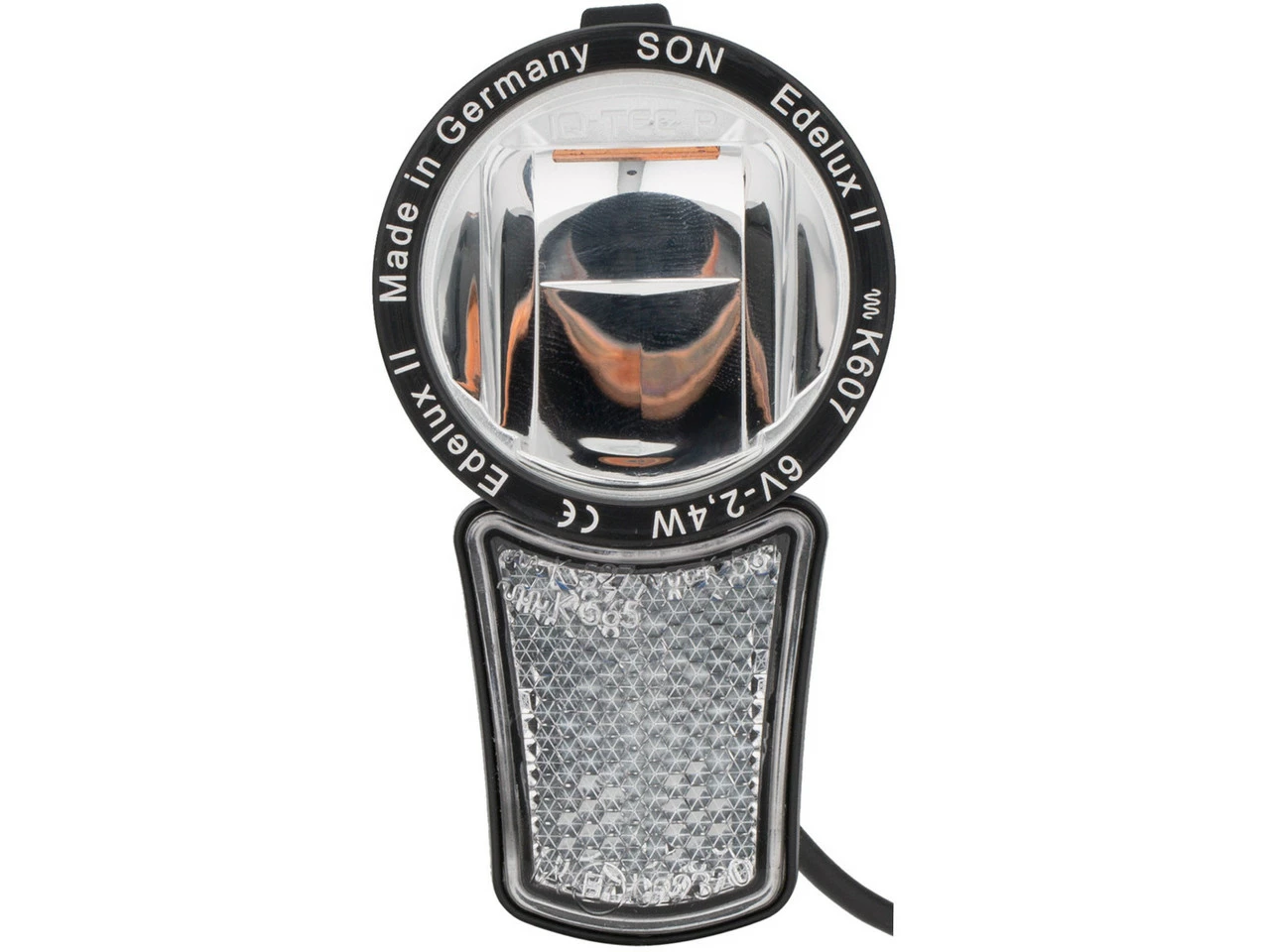 Mit einer innovativen Leuchtdiode und dem vom Lichttechnik-Spezialisten busch+müller entwickelten Reflektor stellt Edelux II seinen fünf Jahre älteren Bruder buchstäblich in den Schatten. Das Lichtfeld ist doppelt so breit, noch besser fokussiert in der Ferne und hat ein gleichmäßig ausgeleuchtetes Nahfeld, das dicht am Vorderrad beginnt. Es entsteht ein gleichmäßig heller Bereich von ca. 2 m bis über 20 m nach vorne, der es ermöglicht, Hindernisse in der Ferne auch bei schneller Fahrt frühzeitig zu erkennen. Nach oben ist der Lichtkegel gut abgeblendet, worüber sich entgegenkommende Verkehrsteilnehmer freuen. Jetzt sind auch unübersichtliche, kurvige Strecken und Langsamfahrt auf schlechten Wegen kein Problem mehr. Der Edelux, bisher Spitzenklasse vor allem für Schnellfahrer, wird zum Allround-Flutlicht.