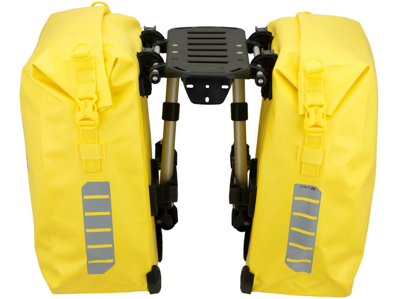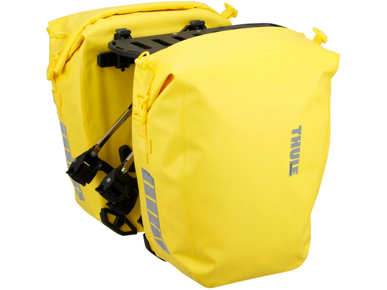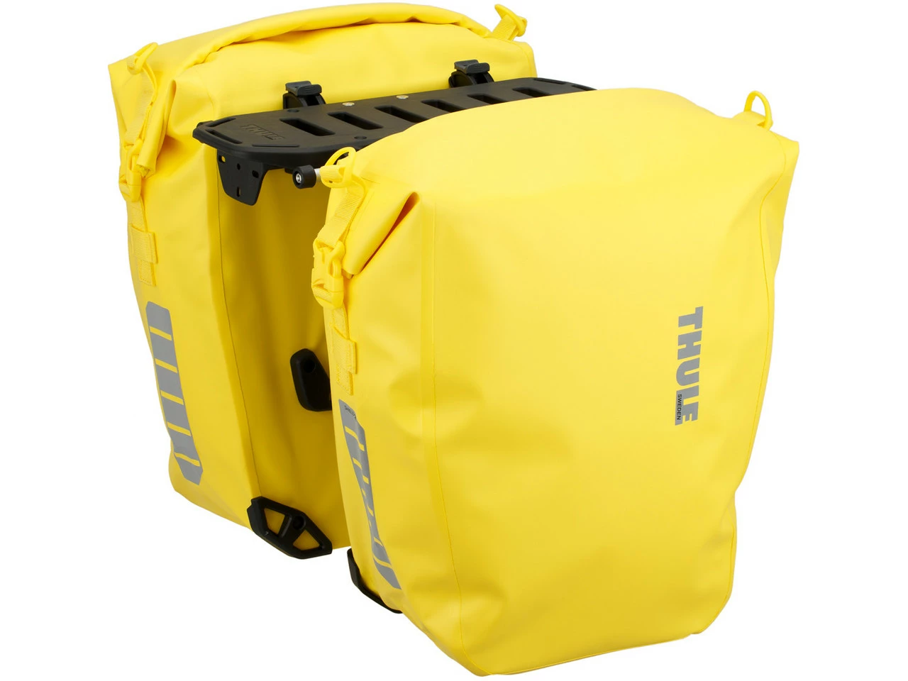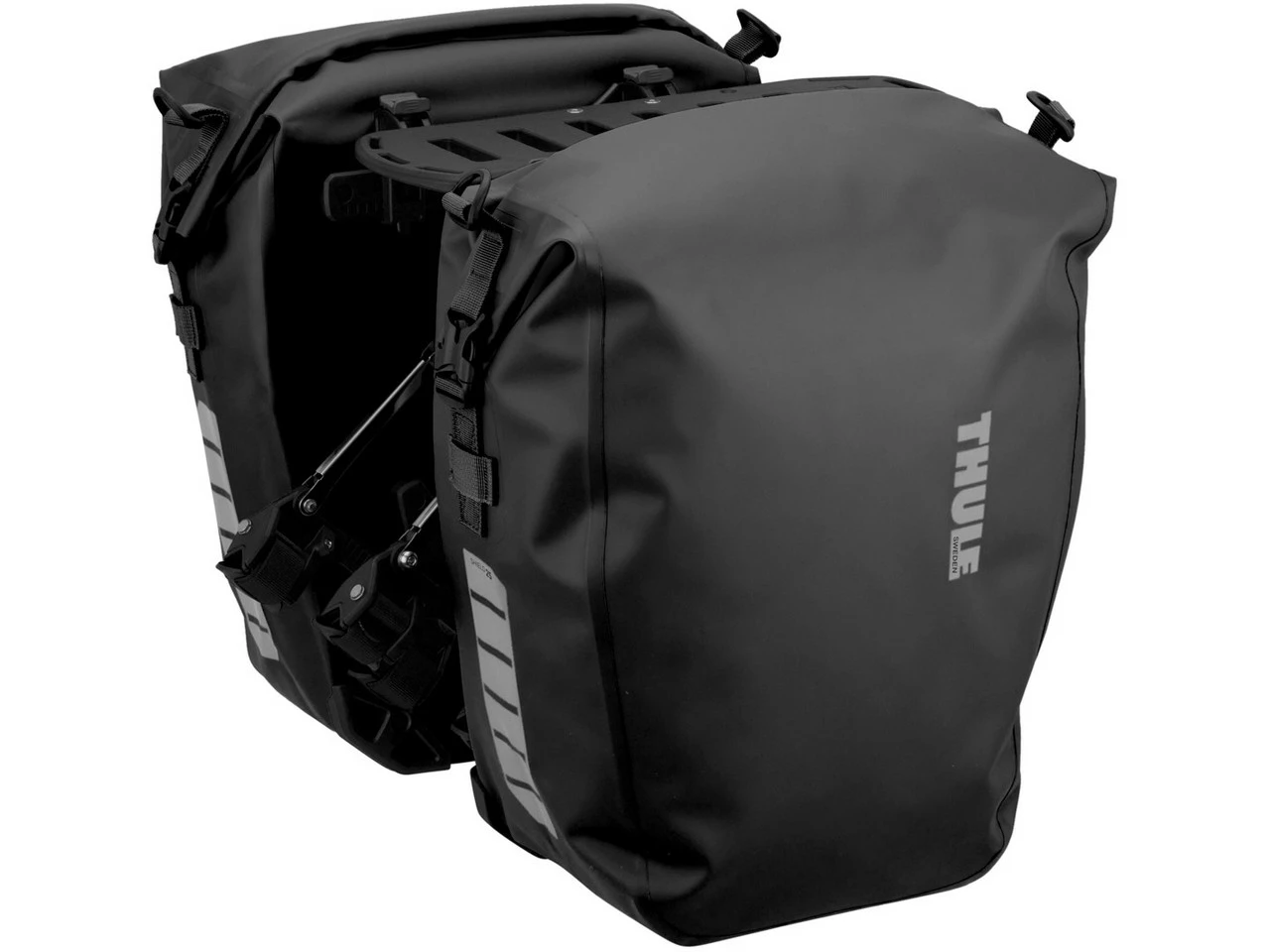 Spezifikationen Fahrradtaschen:Einsatzbereich:Touring & Trekking, CityAusführung:GepäckträgerKompatibilität:für Gepäckträger mit 10 bis 16 mm DurchmesserMaterial:400D Nylon mit TPE-LaminatSchutzklasse:Regen- und Spritzwasserschutz (IP64)Maße (HxBxT):46 x 41 x 13 cmVolumen:25 LiterSpezifikationen Gepäckträger:Einsatzbereich:City, Touring & TrekkingBefestigung oben:HinterbaustrebenbefestigungBefestigung unten:HinterbaustrebenbefestigungLaufradgröße:bis zu 29″ x 2,5″Zuladung (max.):11 kg (hinten), 10 kg (vorne)Technische Daten Gepäckträger:Material:Nylon, Stahl, AluminiumFeatures:Gepäckträger mit Schienen zur Befestigung der Packtaschenpatentiertes, einfach zu montierendes Befestigungssystemmontierbar an den Hinterbaustreben oder an der Gabelverwendbar an jedem Rahmenmaterialrobuste Konstruktion ermöglicht einen vielfältigen Einsatz auch auf Fahrten in rauem Geländevibrations- und geräuschloswasserdichte Taschengeschweißte Nähte und Rollverschlussohne WeichmacherTaschen mit Befestigungsmöglichkeit für FahrradlichterReflektoren auf den Taschen für bessere Sichtbarkeit3 Innentaschen für Dokumente und kleineres Zubehörabnehmbarer SchulterriemenLieferumfang:2 x Fahrradtasche Thule Shield Pannier L1 x Gepäckträger Thule Tour Rack2 x Schultergurt